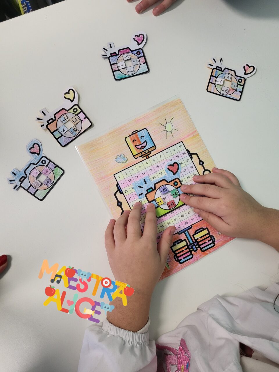 Allora ci facciamo aiutare dall’amico robot pieno di numeri e da una coloratissima macchinetta fotografica che ci aiuta a fare i nostri calcoli!
